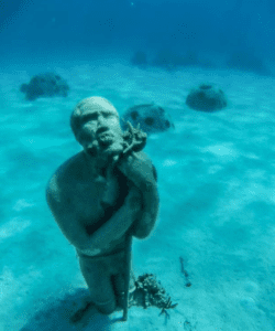His sculptures are not simply artworks — they are habitats, designed to grow coral, attract marine life, and spark global conversations about conservation.